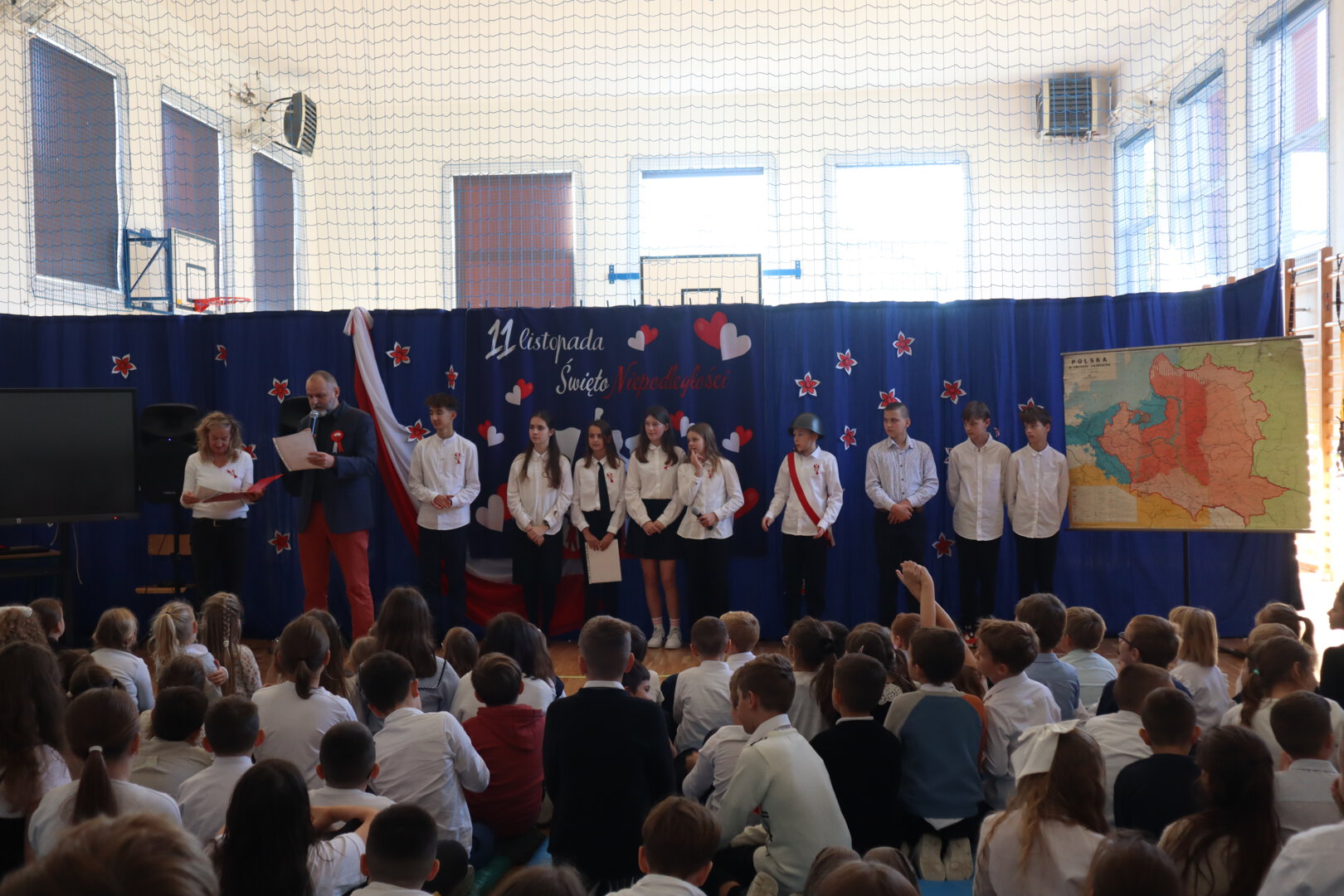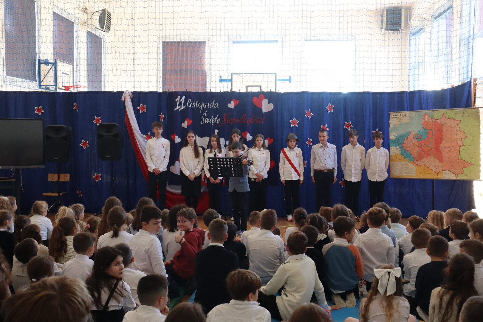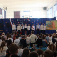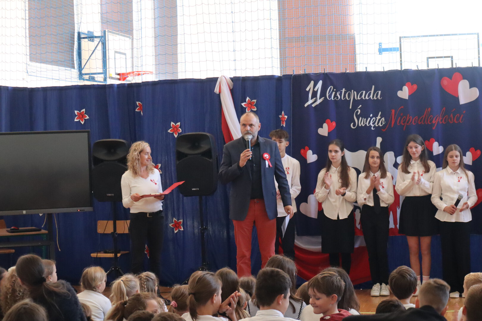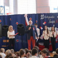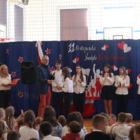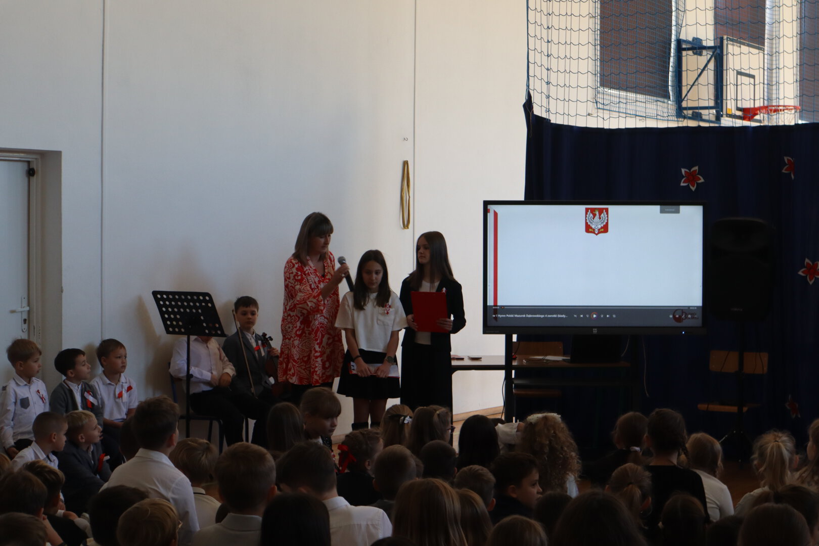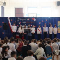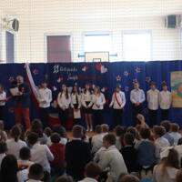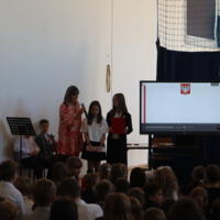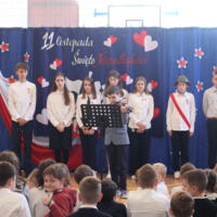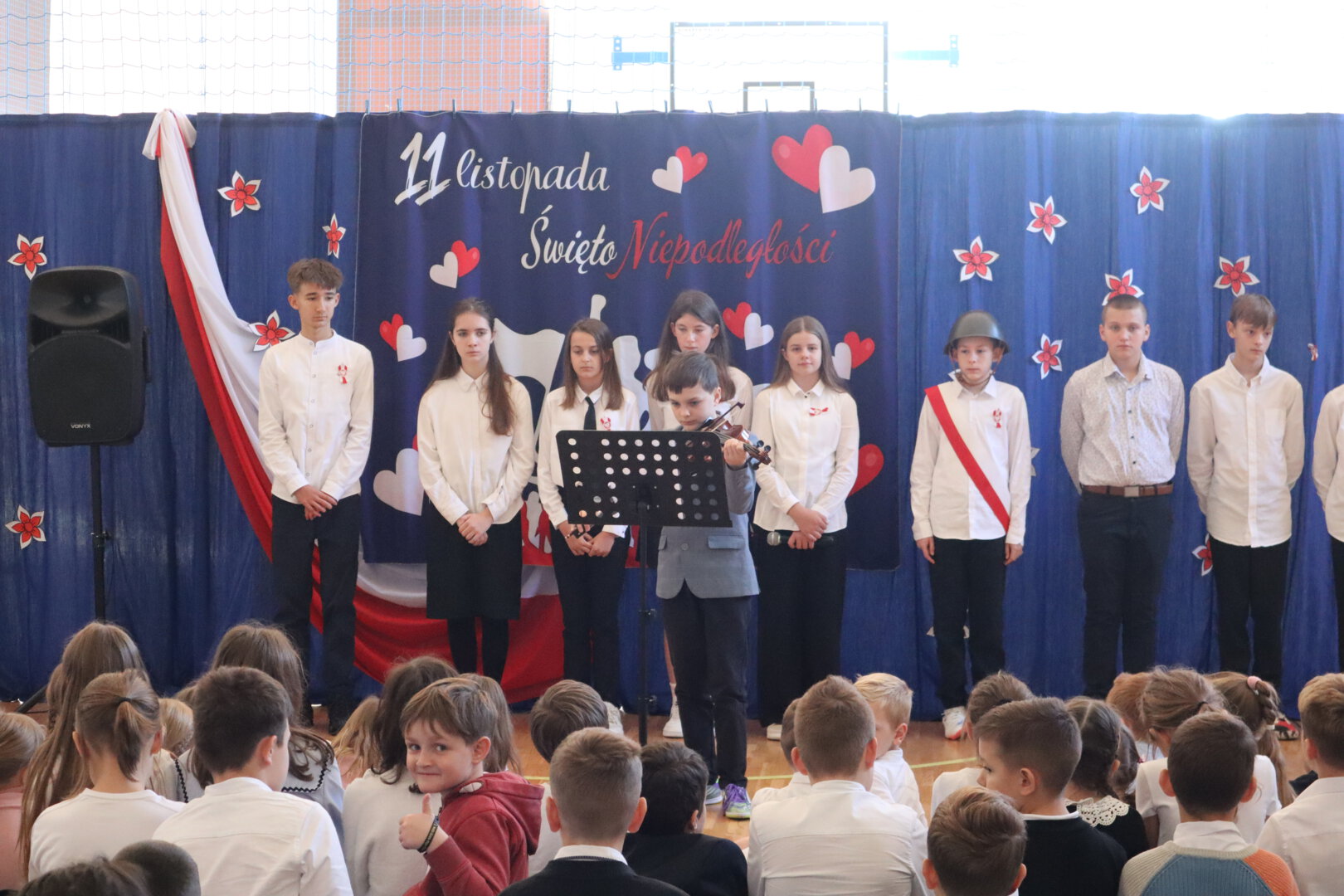Anny Tomaszek (uczennicy klasy 6), która zaśpiewała utwór "Co to jest niepodległość” a także Nikodema Matusika (ucznia klasy 5b), który wykonał na instrumencie smyczkowym pieśń "Rota".