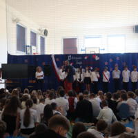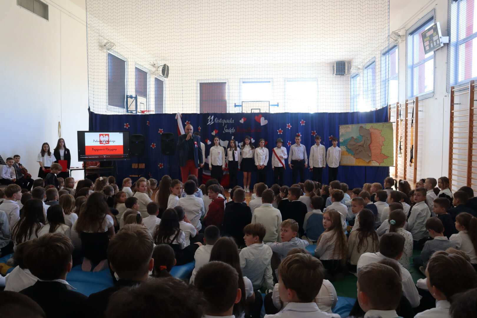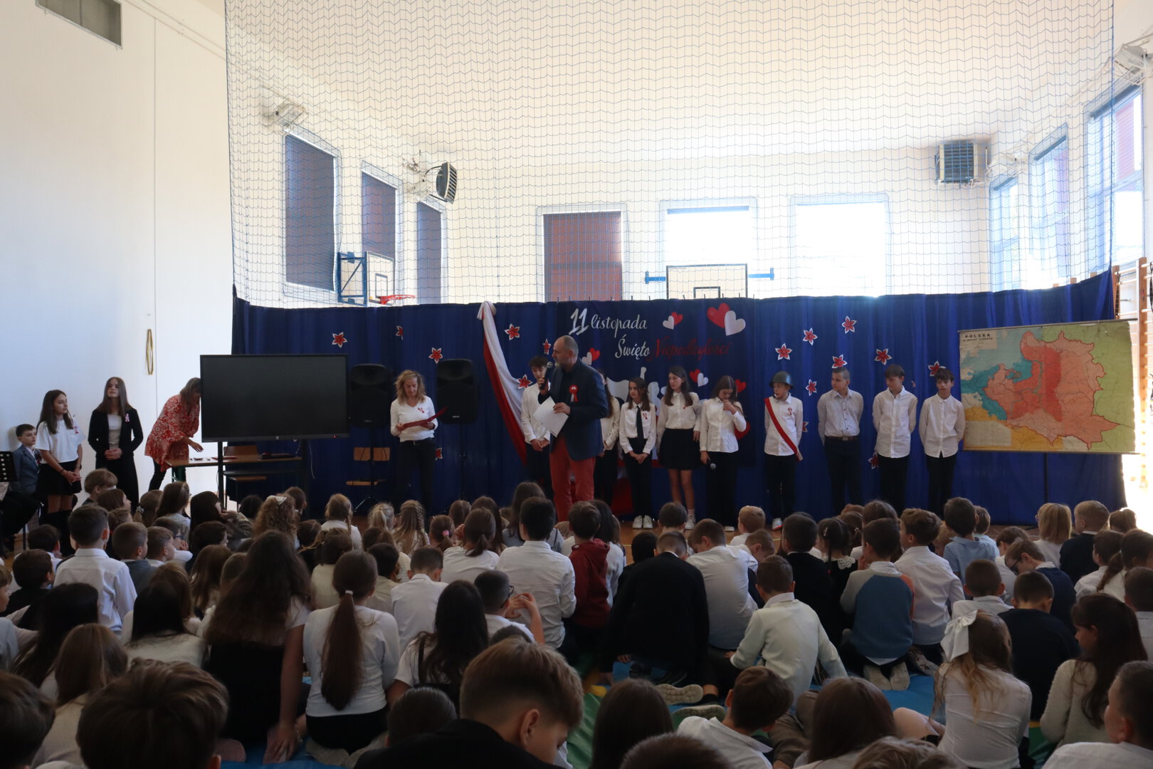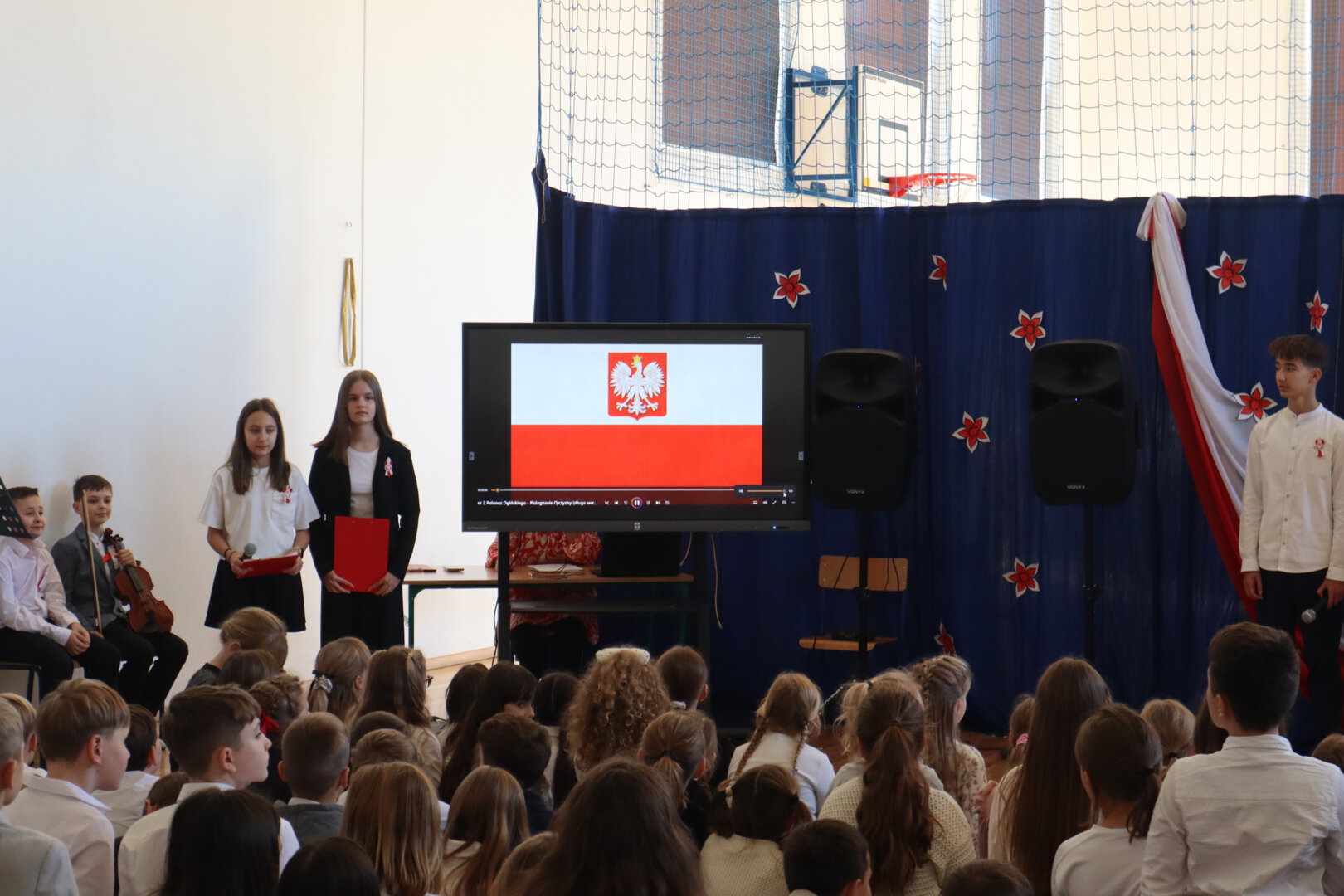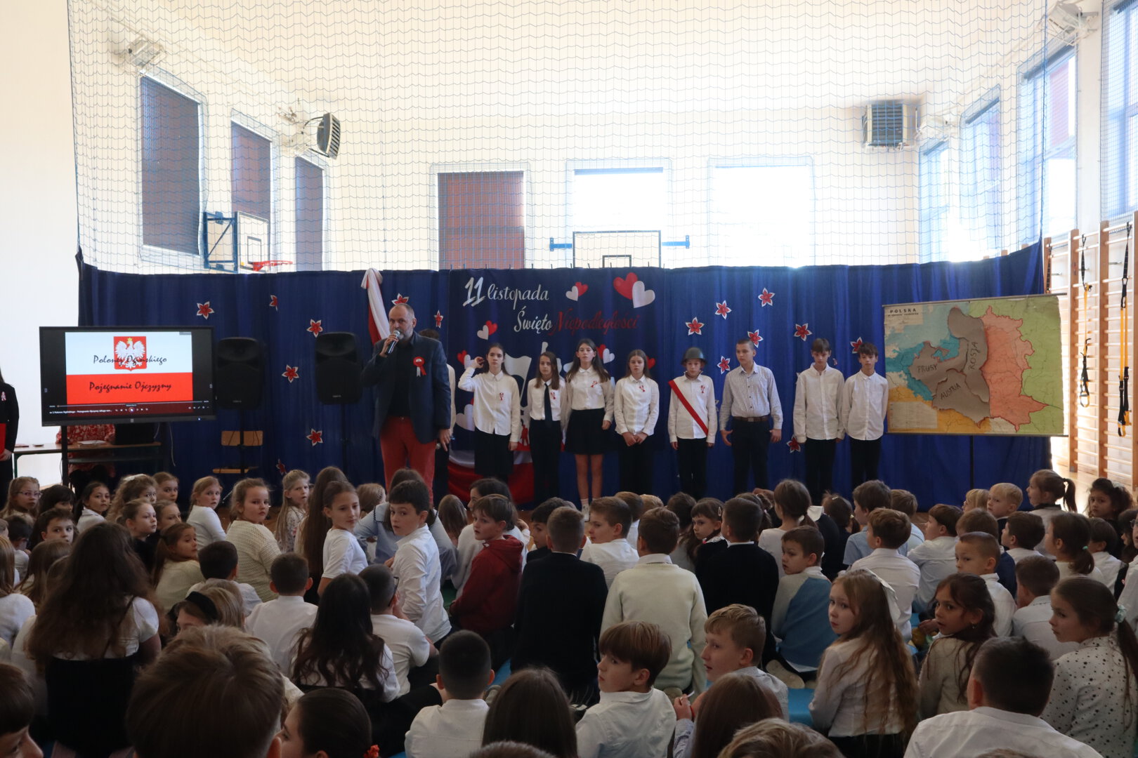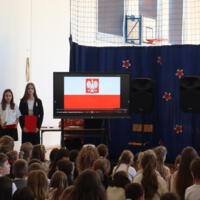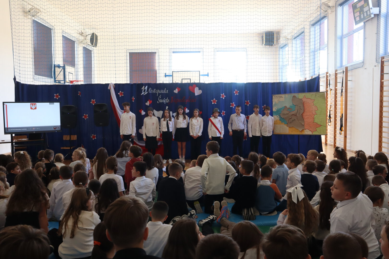 Anny Tomaszek (uczennicy klasy 6), która zaśpiewała utwór "Co to jest niepodległość” a także Nikodema Matusika (ucznia klasy 5b), który wykonał na instrumencie smyczkowym pieśń "Rota".