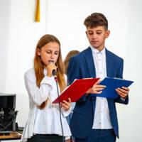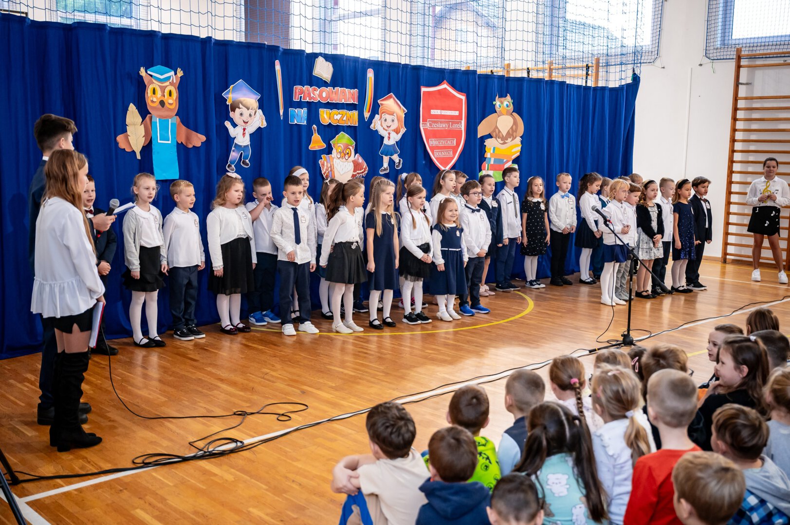 24.10.2025 r. o godz. 10.00 uczniowie klas pierwszych zaprezentowali swój występ artystyczny a po nim złożyli uroczyste ślubowanie. Pan Dyrektor Rafał Majewski dokonał aktu Pasowania na ucznia w obecności zaproszonych Rodziców, nauczycieli oraz uczniów klas młodszych.