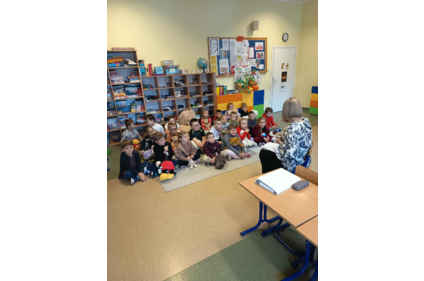 Dnia 13 listopada 2025 roku uczniowie klas I a i I b po raz pierwszy oficjalnie odwiedzili szkolną bibliotekę, by poznać jej tajemnice i wziąć udział w wyjątkowej uroczystości – pasowaniu na czytelnika.