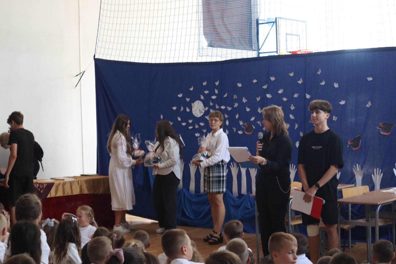 Podczas akademii wręczono nagrody i dyplomy uczniom, którzy z wyróżnieniem ukończyli ten rok szkolny, brali udział w konkursach na szczeblu szkolnym, gminnym i wojewódzkim. W przemówieniu dyrektor Rafał Majewski pogratulował uczniom wyników, podziękował rodzicom za zaangażowanie w życie szkoły i złożył wszystkim życzenia dobrego wypoczynku oraz radosnych i bezpiecznych wakacji.